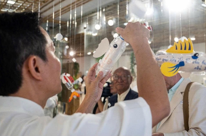 Hoạt động tái chế chai nhựa thành sinh vật biển thu hút khách tham quan