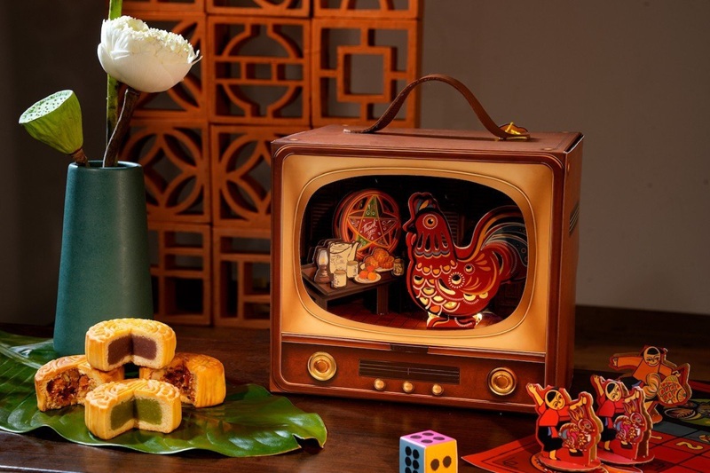Bộ sưu tập Trung thu 2025 của Ikachi chính thức giới thiệu ba dòng sản phẩm mới, đều tái hiện hình ảnh chiếc tivi gắn liền với ký ức tuổi thơ. Nổi bật nhất là “Truyền Hình Trở Về Miền Ký Ức Xanh” – phiên bản sang trọng và hoành tráng, mô phỏng chiếc tivi cổ, tích hợp hộp nhạc dây cót cùng hệ thống đèn LED lung linh. Sự hòa quyện giữa ánh sáng và âm thanh mang đến không gian Trung thu sống động, như đang phát lại cả một bữa tiệc đoàn viên rộn rã tiếng trống lân và ánh trăng rằm sáng ngời.