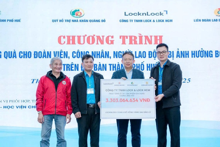 Trong khuôn khổ chiến dịch CSR “Can đảm cùng LocknLock”  năm 2025, thương hiệu gia dụng toàn cầu LocknLock tại Việt Nam đã trao tặng hàng chục nghìn sản phẩm gia dụng với tổng giá trị 3,3 tỷ đồng hỗ trợ người dân thành phố Huế tái thiết cuộc sống sau mưa lũ.