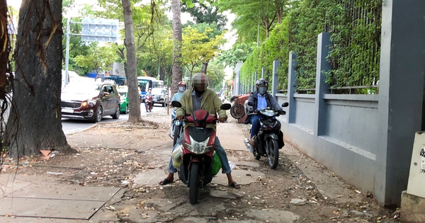Xe máy leo vỉa hè trên đường Nguyễn Đình Chiểu, quận 1, TP HCM. Ảnh: ANH VŨ