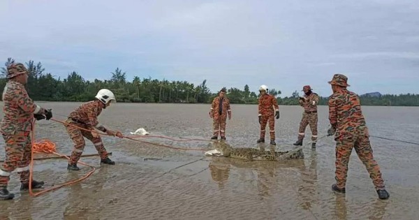 Một con cá sấu bị bắt gần đây ở bang Sabah. Ảnh: LUNDU FIRE AND RESCUE DEPARTMENT