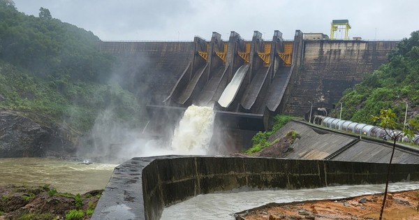 Thủy điện Hương Điền điều tiết nước. Ảnh chụp chiều 17-10.