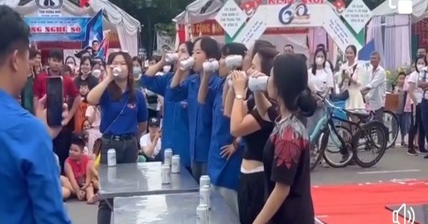 Đặc biệt, phần thi này nghi vấn có cả học sinh trường THPT tham gia. Theo đó, khoảng 7 nữ, trong đó, 2 người đang mặc đồng phục trường học tham gia uống bia. Bên cạnh đó, người dẫn chương trình liên tục reo hò, hô hào cổ động viên của Trường THPT Hoàng Văn Thụ (TP Uông Bí) cổ vũ cho cô gái đại diện tham gia cuộc thi.