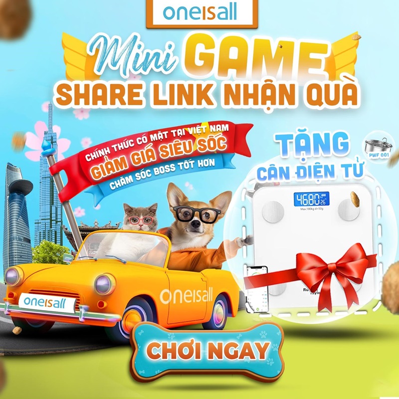 Toàn bộ các sản phẩm chăm sóc thú cưng của Oneisall sẽ được khuyến mãi với mức giá cực số, giảm sâu lên đến 33% để chào mừng sự kiện có mặt tại thị trường Việt Nam.