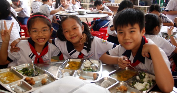 Các em học sinh tận hưởng bữa trưa với thực đơn từ Dự án Bữa ăn học đường