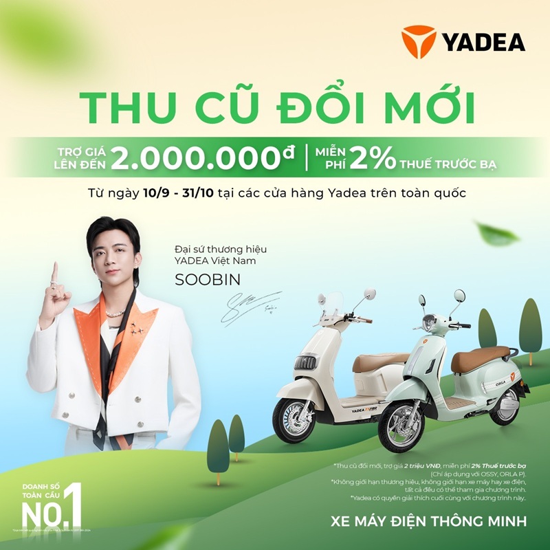 Chương trình đang diễn ra trên toàn quốc, từ nay đến hết ngày 31/10, người dùng có thể mang bất kỳ xe xăng hoặc xe điện cũ của mọi thương hiệu, đến hệ thống cửa hàng Yadea để đổi sang các dòng xe mới gồm Yadea Ossy và Orla (Orla P, Orla P Gấu Dâu, Orla Gấu Dâu, Orla thường). Khách hàng sẽ được trợ giá đến 2 triệu đồng, đồng thời miễn 2% thuế trước bạ, qua đó giảm đáng kể chi phí sở hữu xe điện và thúc đẩy quá trình chuyển đổi sang phương tiện xanh.